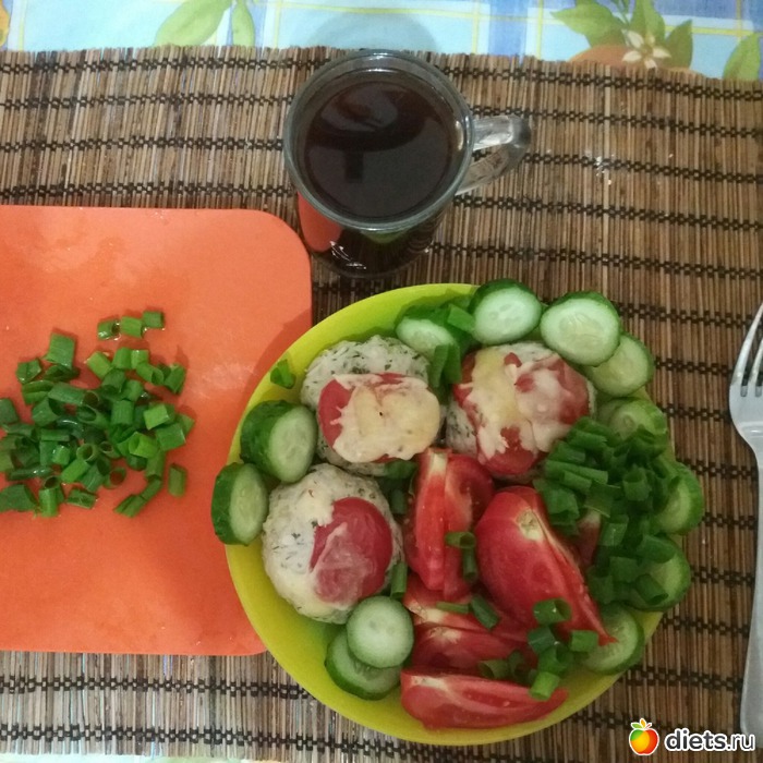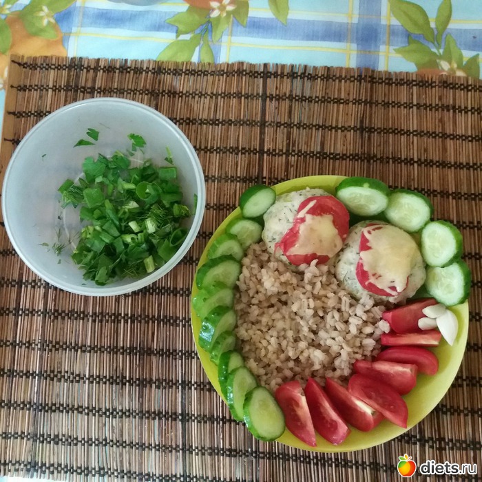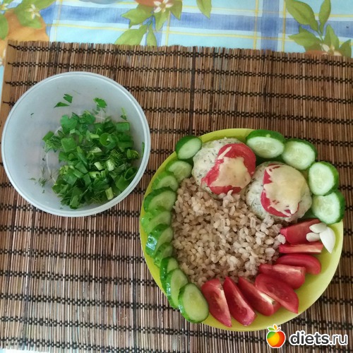 О: опять перловка, курокабачковые котлеты, овощи, цикорисливки, хлебцы с маслом и сыром