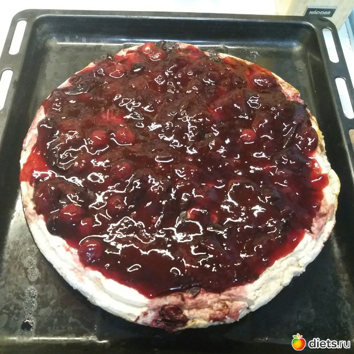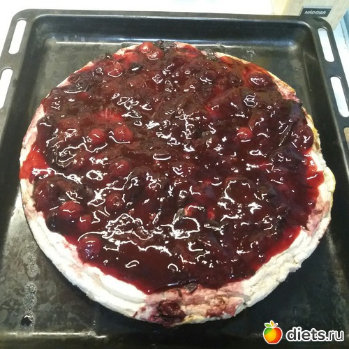 Вообще, он должен был быть со свежими сливами, половинки которых впечатываются в крем и так запекаются. Но у меня была только мороженная слива, которая после разморозки превратилась в кашу, поэтому я просто добавила в эту кашу крахмал и чуть сахара, немного поварила на огне до лёгкого загустения и выложила сверху на крем! И ещё мой косяк: бегло прочитала рецепт и вместо 3х белков бухнула в крем 6, поскольку их взбивают, то кема стало ооооччччеееннььь много. Но в общем и целом вышло всё, как мы с мужем любим - практически не сладко (на весь огромный пирог по рецепту всего 160 гр сахара), с лёгкой кислинкой, даже мои косяки его не испортили! Сегодня на завтрак была дегустация: