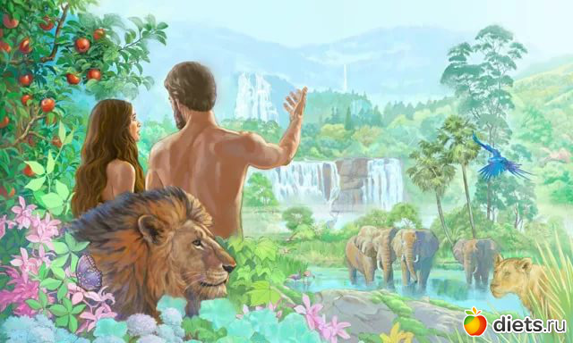 "В начале сотворил Бог небо и землю. Земля была покрыта брокколи, цветной капустой и шпинатом, и овощами разными: зелеными, желтыми и оранжевыми всех видов, и у Адама с Евой жизнь была долгой и здоровой. И сотворил Сатана мороженое «Бен и Джерри», и бублики с маслом. И спросил Сатана Адама: «Хочешь ли ты отведать жирного сыра с бубликом?» И ответил Адам: «Да!» И добавила Ева: «И я хочу! И добавь солений!» И поправились Адам с Евой каждый на 3 килограмма. И сотворил Бог живой био-йогурт, чтобы Ева смогла сохранить фигуру, которую так любил Адам. И сотворил Сатана белую пшеничную муку, дрожжи и тростниковый сахар, и перемешал их. И перешла Ева с 36 размера на 44-й. И сказал Бог: «Ешь с аппетитом этот зеленый салат из моего райского сада!» И сказал Сатана: «И добавь в него соус из голубого сыра, и положи рядом чесночный хлеб». И расстегнули Адам и Ева свои пояса после трапезы. И сказал Бог: «Послал я вам свежие овощи для здорового сердца, и оливковое масло холодного отжима». И выложил Сатана на стол бараний кебаб, шуарму в пите, и курицу жареную в панировочных сухарях, и предложил есть, не стесняясь. И подскочил у Адама и Евы холестерин до небес. И сотворил Бог картофель, запеченный в духовке без масла, с повышенным содержанием калия и других полезных ингредиентов. И почистил Сатана картофель, нарезал его на тоненькие ломтики, и пожарил его в глубоком масле, и назвал его «чипсами», и щедро посолил. И еще набрал веса Адам. А у Евы выскочили прыщи. И сотворил Бог кроссовки для бега, и дал их своим детям, чтобы сожгли они излишек веса. И дал Сатана Адаму и Еве кабельное телевидение с пультом дистанционного управления, чтобы не напрягались, если захотят переключить программы. И смеялись, и плакали Адам и Ева напротив мерцающего экрана, и надели удобные домашние тренинги с резинкой на животе. И дал Бог Адаму и Еве постное мясо, диетические продукты, нежирные сосиски, чтобы не набирали они много калорий. И сотворил Сатана Макдональдс, и чизбургер за пять шекелей. И сказал Сатана Адаму: «Ты хочешь чипсы?» «Да! - ответил Адам – Увеличенную порцию!» И получили Адам и Ева инфаркт! И вздохнул Бог, и создал операцию по шунтированию сосудов сердца. И усмехнулся Сатана, продолжая схватку, и создал министерство финансов и больничные кассы. (Кто автор - не знаю) "