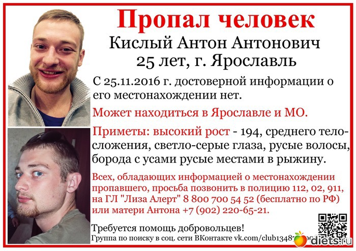 группе "ПОИСК КИСЛОГО АНТОНА" или по тел. 8-902-222-65-21.