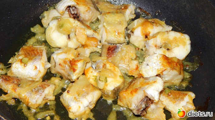 Снова поставила рыбу в духовку. Минут через 10 повторила предыдущую процедуру. Сделала тоже самое еще минут через семь. Недолго потомила рыбу в духовке.