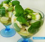 ила киви с грушей, уже лет 10 предпочитаю есть их нарезаными вместе, правда без сиропа и мяты.
