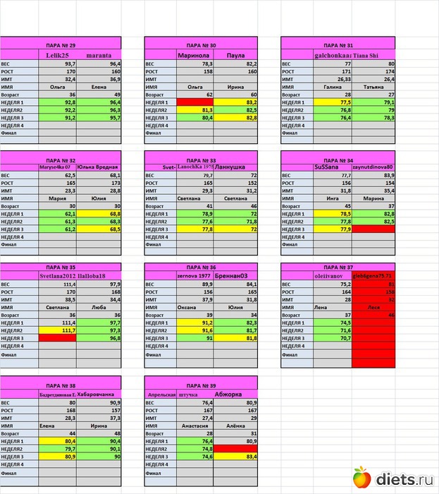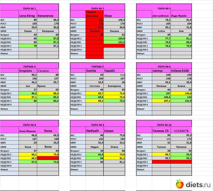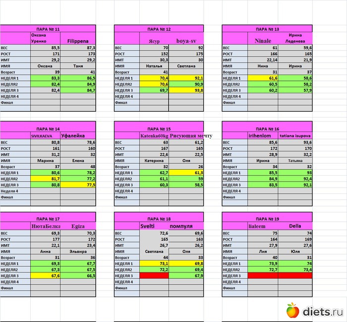 поэтому на взвешивание в среду некоторые пары объединятся по-новому.