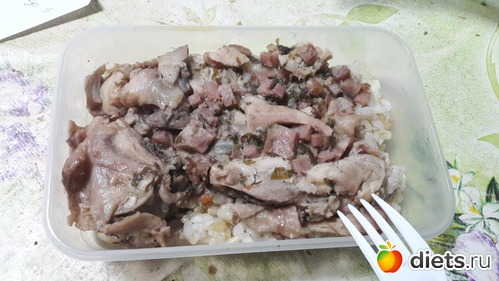 Обед - курица по-средиземноморски (из книги "-60" ) + отварной бурый рис. Всего: 250г