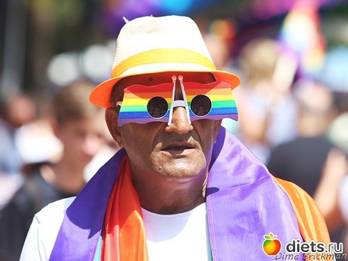 Среди участников были не только лесбиянки, геи, бисексуалы и трансгендеры, но также гетеросексуалы, многие из которых приходили парами или семьями.