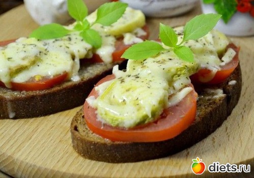Перекусом мне стали два горячих бутера с сыром, кабачком и помидором. Ну не наедаюсь я супом, что делать