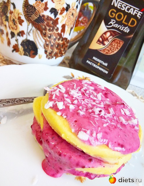 На завтрак у нас были кукурузные панкейки (рецепт писала тут