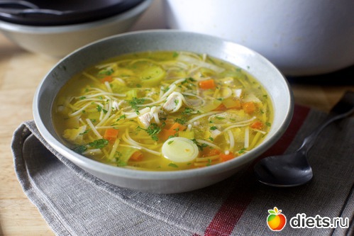 Я их не особо люблю, да к тому же и не наедаюсь ими, но раза два в неделю ем. Обычно в выходные. Вот и сегодня умяла тарелочку куриной лапши с бутером из цельнозернового хлебушка и своего мраморного рулетика из индейки (рецептик был тут