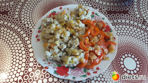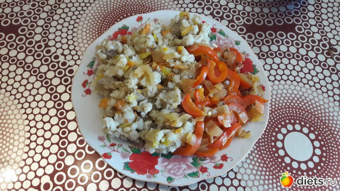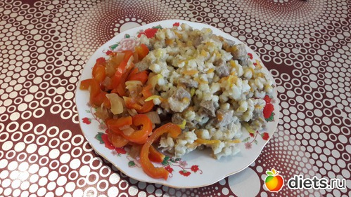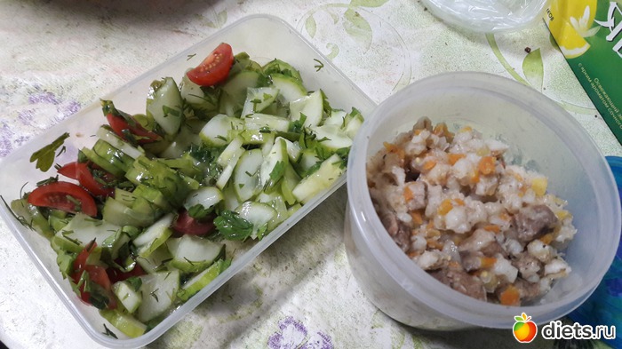 Обед - перловка с мясом и овощами, салат из огурца и помидора с подсолн.маслом (1/2)