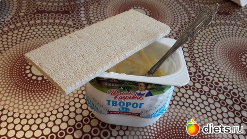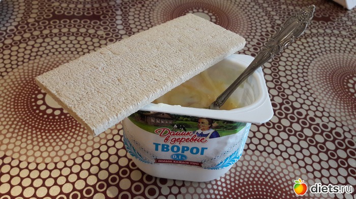 Перекус - 1/2 пачки обезжиренного творога с 1 ч.л.абрикосового варенья + хлебец
