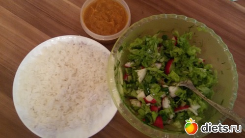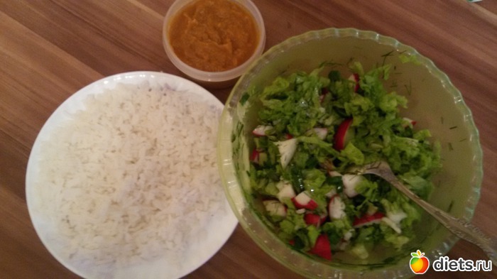 рис, кабачковая икра.