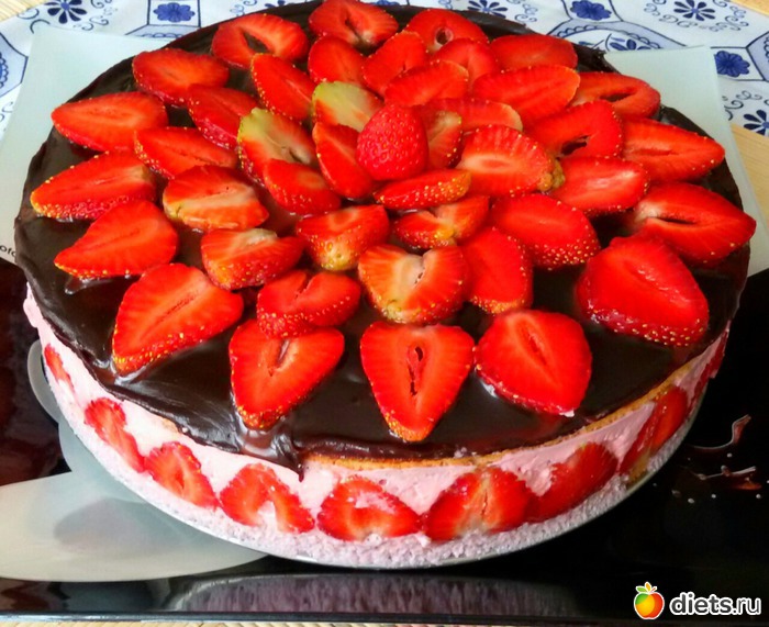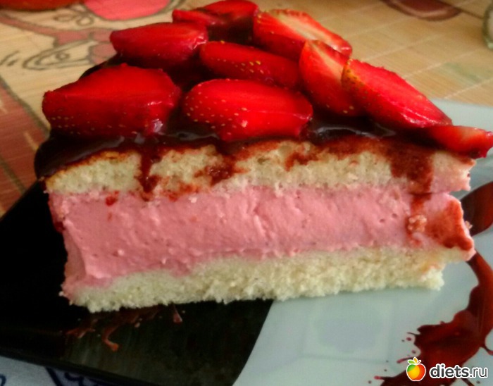 Суфле: ничего не взвешивала: творог+сметана+сах пудра+клубника+желатин.