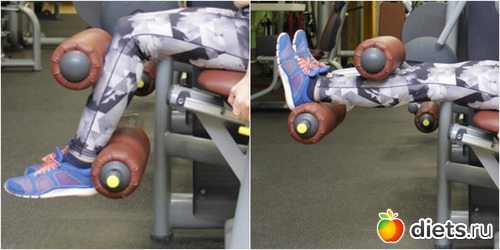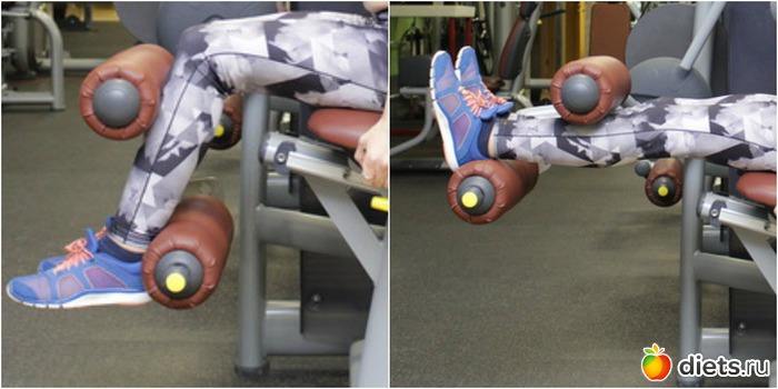 Как правильно выполнять упражение: садитесь ровно, согните ноги под углом 45 градусов, лопатки сведите, поясница в этом случае будет изогнута. Руками лучше держаться за поручни для более устойчивого положения. Поднимайте ноги, колени при этом держите на одном уровне.