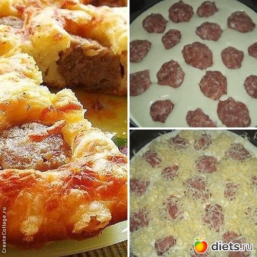 Готовому пирогу дать некоторое время постоять и впитать в себя выступивший сок фрикаделек.