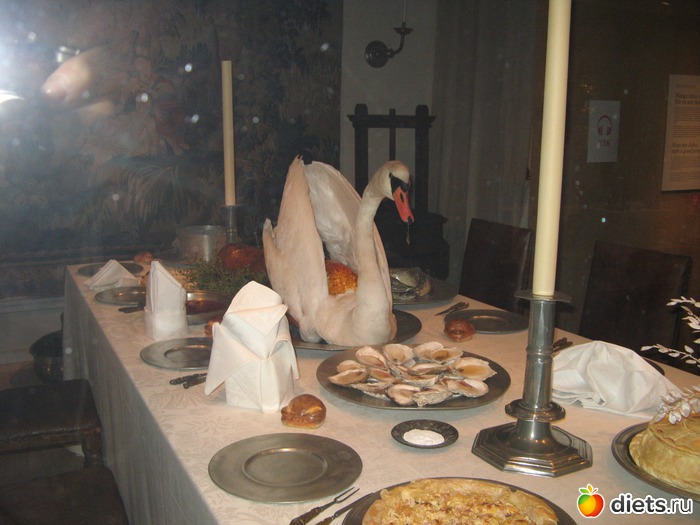 В описании сказано, что птицы были муляжами и их не ели, а ставили для украшения. Странно, всегда думала, что из тоже употребляли.