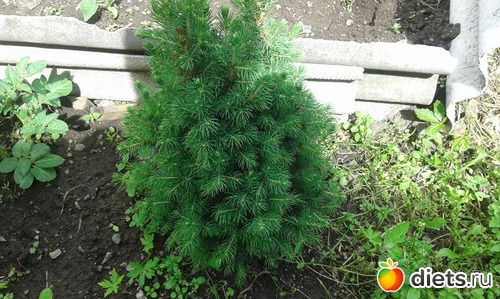 Чтобы елочка была пушистая, как шарик и не росла в высоту. Надо каждый год общипывать прирост наполовину. У неё елочке лет 15, а она