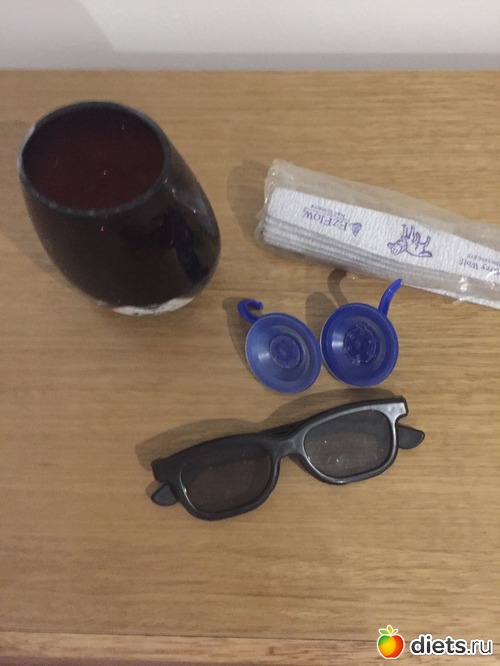 Выкидываю 5 вещей : два неудачных вакуумных крючка , которые тут же отваливаются как приклеишь , второй стаканчик нашелся во второй ванной , откуда то приблудившиеся очки для 3д и неудачный набор пилочек .