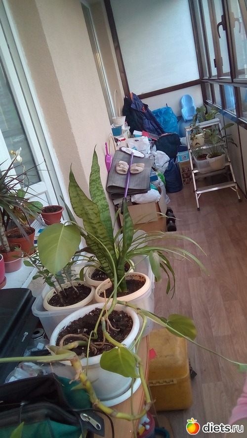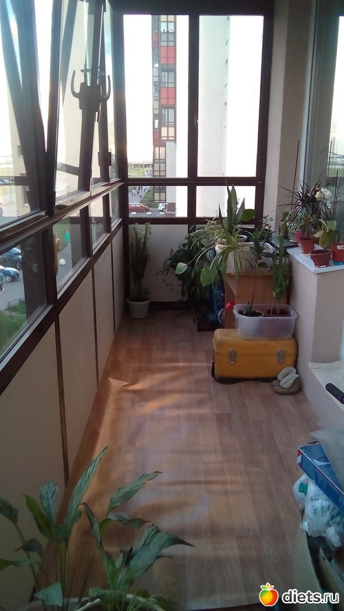 На балконе для идеала очень далеко. Требуется шкаф. Скорее всего будем делать под заказ, узкий, светлый, и до потолка со стороны закрашенного окна. И думаю еще пару полочек на стене между окнами повесить для цветочков и подоконники выровнять надо. Ну вот нафига в застекленном балконе нужны подоконники со сливом?