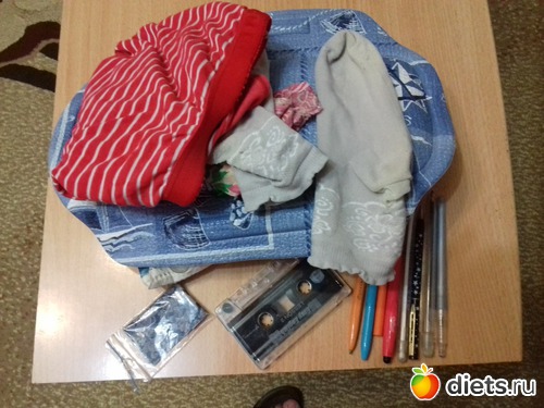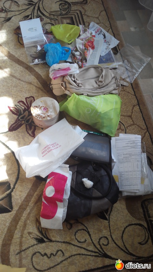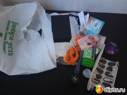 В кульке дрянь всякая из моего стола. И наконец-то выкинула бигуди, которые не знаю для кого придумали! У меня на них волосы запутывались насмерть!