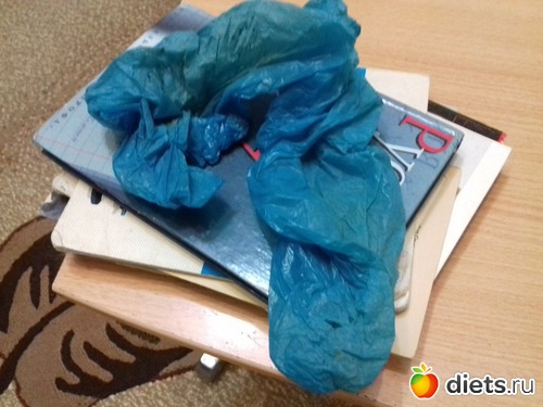 Сверху лежат бахилы... вот на фига хранить старые, грязные бахилы??? Затрудняюсь ответить... а лежали между старыми учебниками!