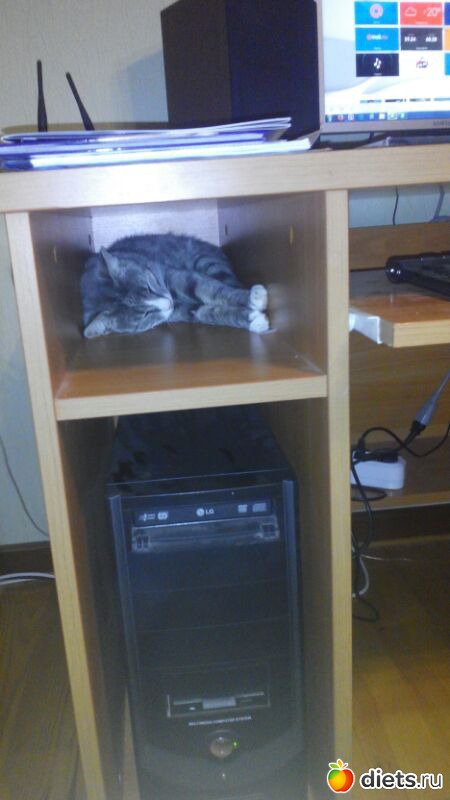 Убирала в письменном столе сына. Достала ящик и на пустое место тут же взлетел любопытный кот