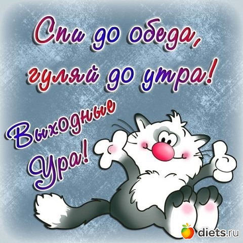 Девочки всем доброе субботнее утро! Ой что то я расслабилась совсем, и не считаю и даже не взвешиваюсь, хотя бы раз в неделю. Хотела пожить так до приезда сестренки и пока она у нас будет, ждали ее в следующее воскресенье, а вчера она меня, по скайпу расстроила, сказала, что билеты сдала и отпуск откладывается на неопределенное время. К ним в банк пришла проверка из ЦБ и на сколько, пока, не говорят, все шерстят и как тут уйдешь в отпуск. Может на той неделе что то прояснится со сроками. Так что все, в понедельник прекращаю жрать, взвешивание каждый день и чтобы не было пути назад, буду, ну