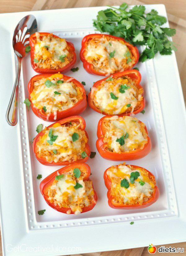 Ставим в разогретую духовку на 180-200 градусов на 30 минут. Достаем противень и посыпаем каждый перец натертым сыром. Отправляем в духовку еще на 10 минут, пока сыр расплавится и образуется корочка.