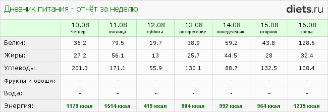 1179+1514+419+904+992+964+1239=7211÷7=1030 ккал в день