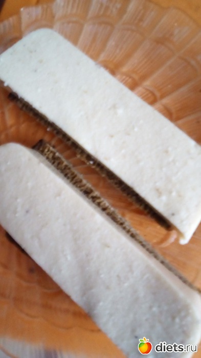 Залить в форму и оставить в холодильнике до застывания. Затем достать из формы, порезать на кусочки.