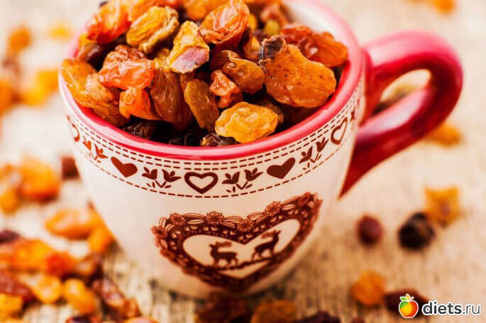 Изюм тоже имеет массу полезных свойств и главное из них — большое количество йода, необходимое для правильного функционирования щитовидной железы. Спасибо скажут также волосы и кожа. Средний ГИ позволяет включать его в небольших количествах практически во все диеты.