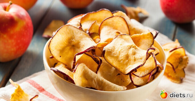 15 грамм сушеных яблок в день — идеальный перекус. Сочетание витаминов А, И и PP улучшает работу мозга и качество крови, предотвращает анемию, ускоряет метаболизм и благодаря пектинам является своеобразным природным жиросжигателем.