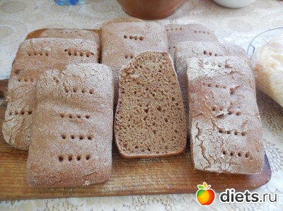 Смазать хлеб холодной водой и поставить в предварительно нагретую до 250 С на 20- 25 мин.