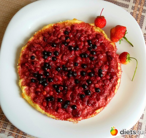 Творожная запеканка с лесными ягодами. Очень вкусная.
