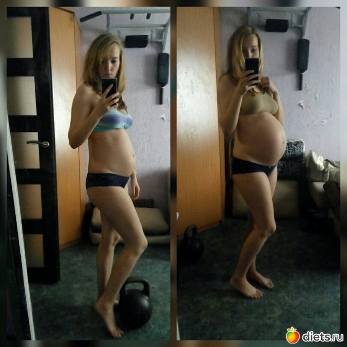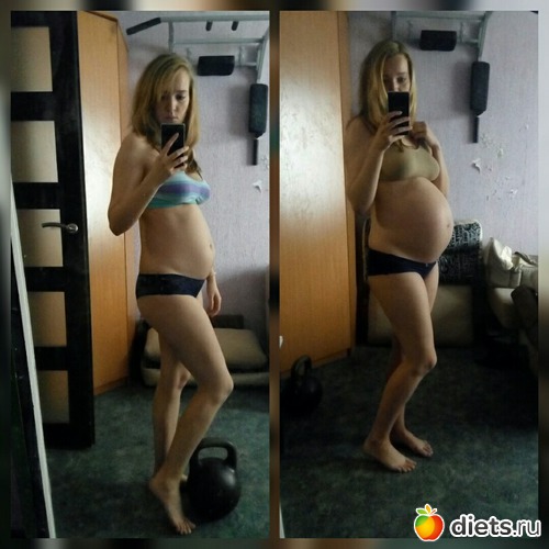 Вот такой коллажик сюда еще помещу, это 28недель беременности и 39 полных соответственно. За этот период набор веса составил почти 6кг.