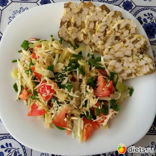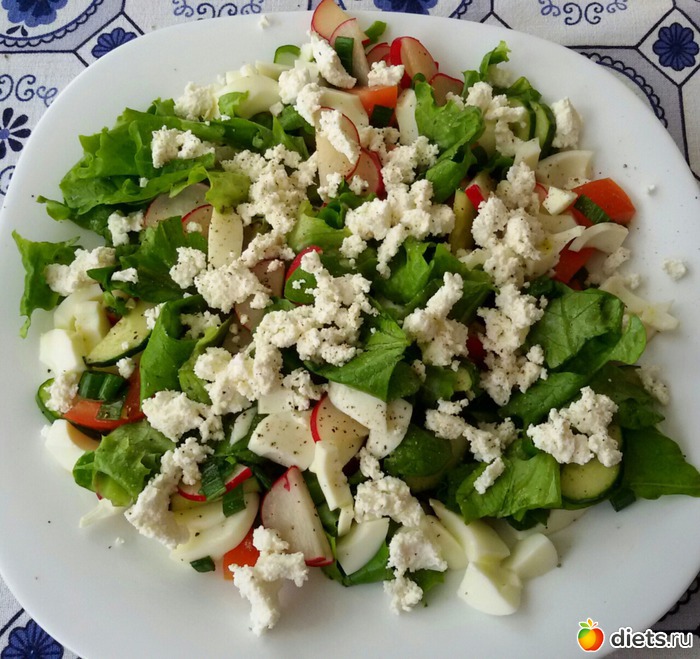 Салат овощной с творогом и белком яиц.