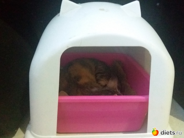 Собрала кошке домик, живот у нее округлился, теперь точно видно что с котятами.