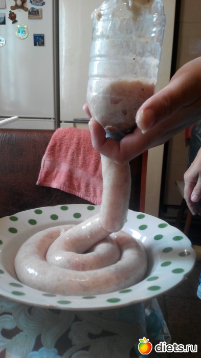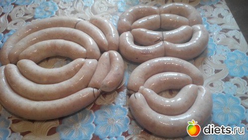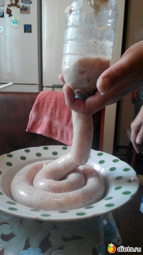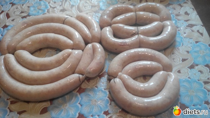 А то мне тоже дали кишки и собираюсь сделать.Хотела курино-говяжие правда.Но если сливки добавить наверное не сухо получается?