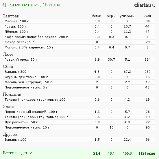Сейчас разнесу в табличку, все что сегодня уже съела и посмотрю...