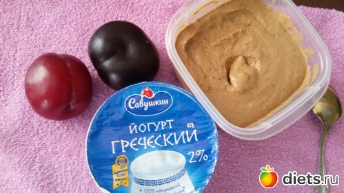 . Осилила его совсем немного, хорошо был греческий йогурт и 2 сливы. Вот ими и поужинала.