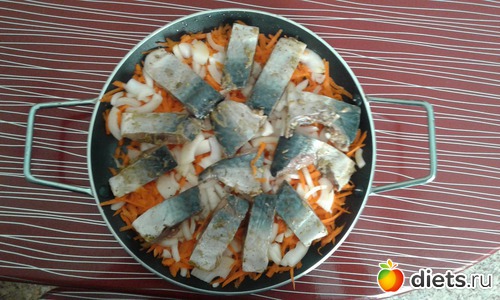 Блюдо по вкусу похоже на рыбу под маринадом, но готовится без уксуса. Просто тушится с морковкой и луком в томатном соусе.
