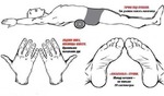 Руки положить под голову так, чтобы ладони были обращены вниз. Соприкоснуться мизинцами. Расслабить мышцы.