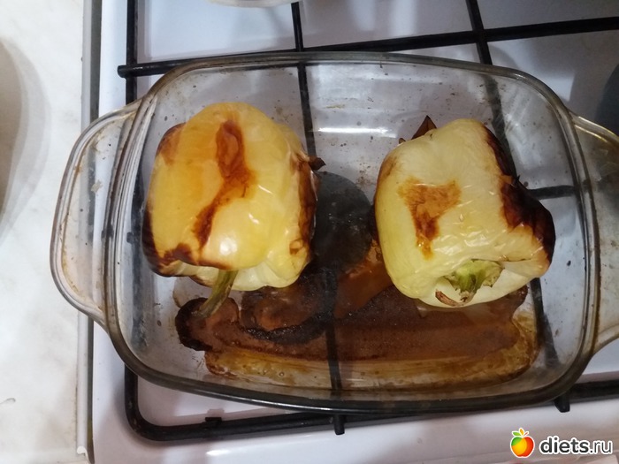 1. Первым делом надо запечь перец (~25-30 мин в духовке)