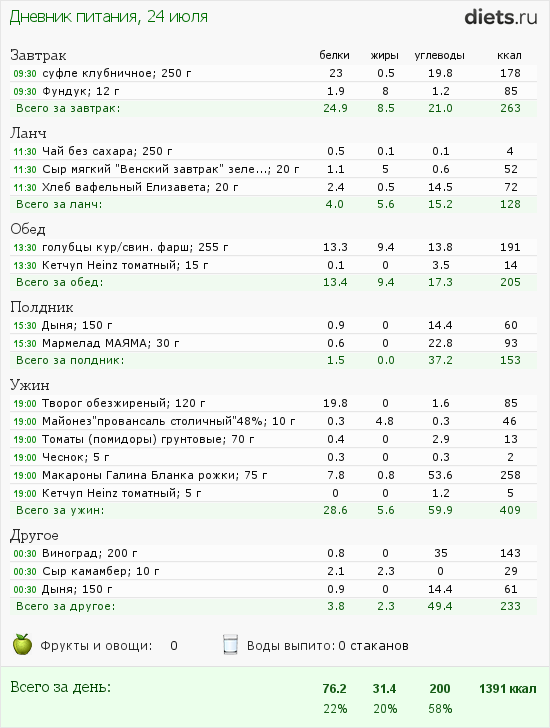 Я тоже тут считала, но старалась вводить свои продукты, данные брала с этикетки.