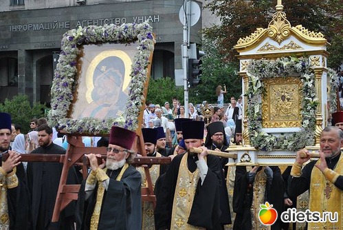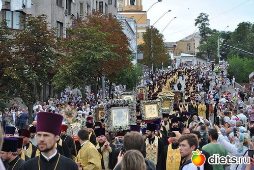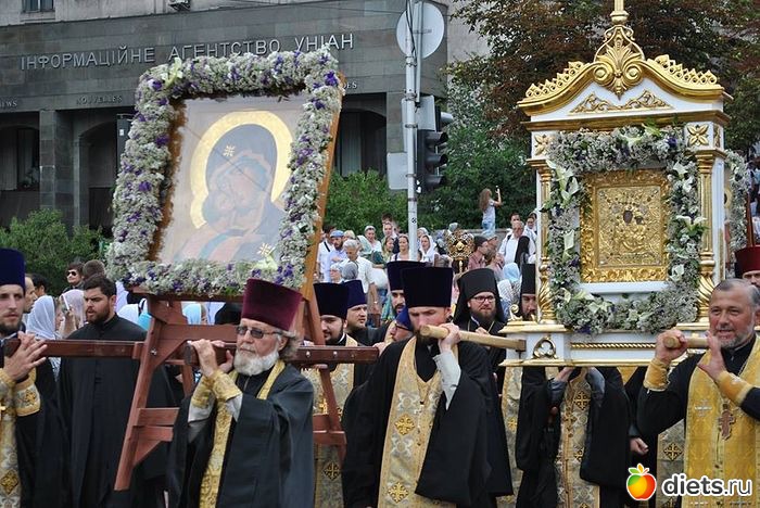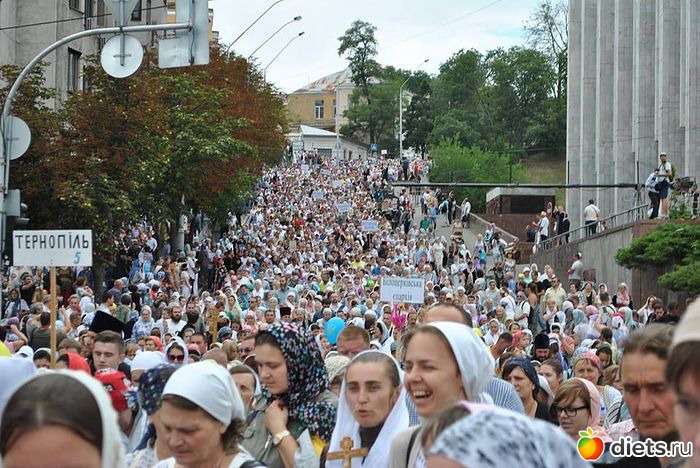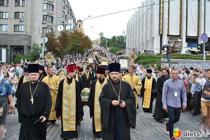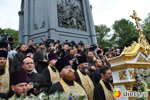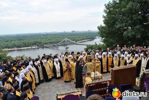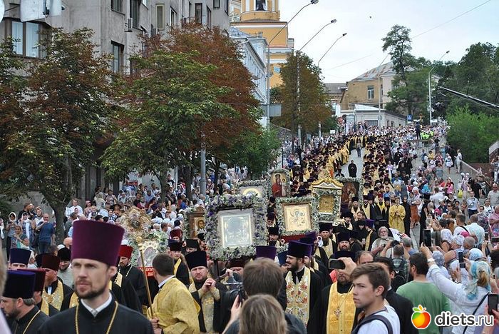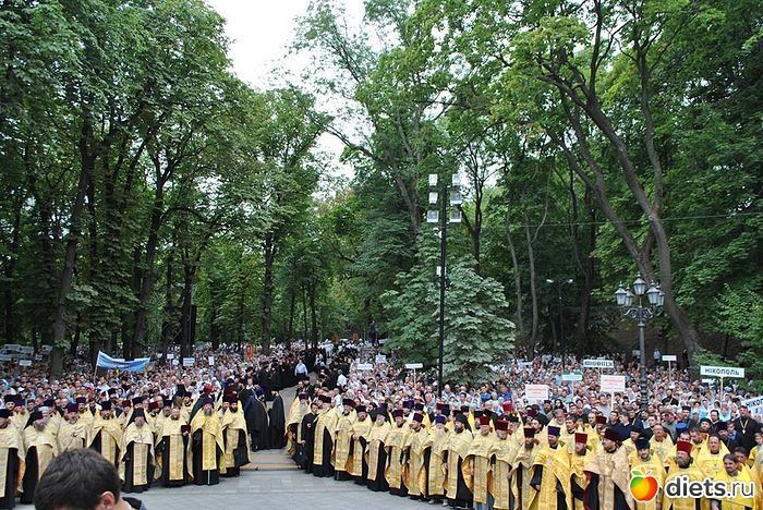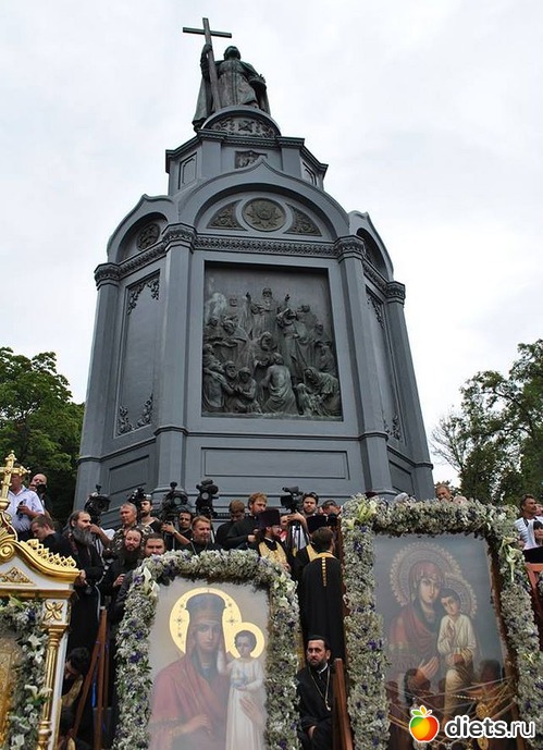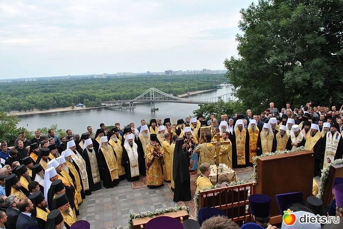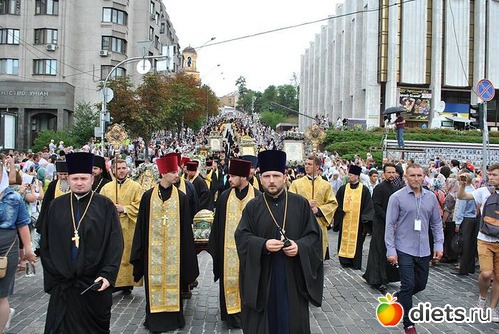 Многотысячная людская река Крестного хода, украшенная крестами и хоругвями, чудотворными иконами, под молитвенные песнопения поплыла аллеями Владимирской горки вниз ко Крещатику и далее вверх, на Печерск: к древней святыне – Киево–Печерской лавре, где на площади перед Успенским собором состоится Божественная служба в канун празднования дня памяти святого равноапостольного князя Владимира.