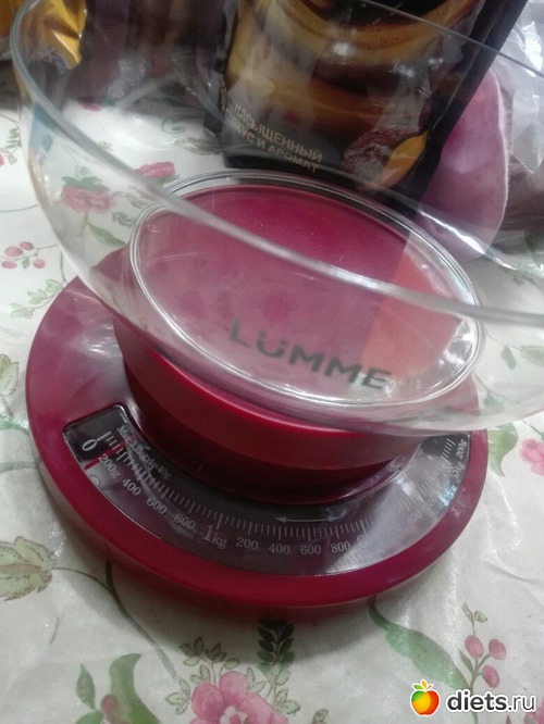Купила себе наконец-то кухонные весы!!! Надоело на глазок граммы писать, естественно не правильно ккал считаю! Решила взять механические. Они, на мой взгляд, вернее! Ну посмотрим, пока ими довольна!)