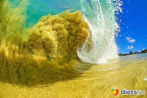 «Этот снимок был сделан в 60 см в воде во время отлива. На мелководье песок втягивается в волну».