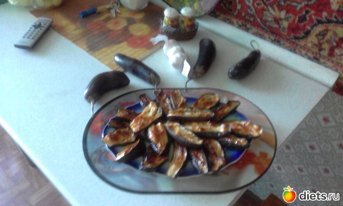 сегодня предлагаю свой рецептик, как быстро и вкусно приготовить баклажан( синенький). Правда все все ингредиенты на глазок, то есть на вкус. Рецепт простой берем баклажаны-режим их на пополам( я беру небольшие) и делаем внутри их надрезы, но так чтобы они не развалились - пересыпаем, а точнее натираем их солью(убрать горечь) и оставляем на 20 мин. Пока баклажаны настаиваются берем чеснок -очищаем его и раздавливаем чеснокодавилкой(или мелко рубим) добавляем майонез или сметану - перемешиваем. После того как горечь с баклажанов ушла их положить на противень, застеленный пекарской бумагой и смазанный маслом. Сверху баклажаны смазываем нашим соусом ( по желанию можно добавить сыр) и отправляем в духовку при t -180-200 С, готовить где-то 20- 30 мин, в зависимости от объема баклажана. Получается очень вкусно сытно, но целоваться...( не желательно)