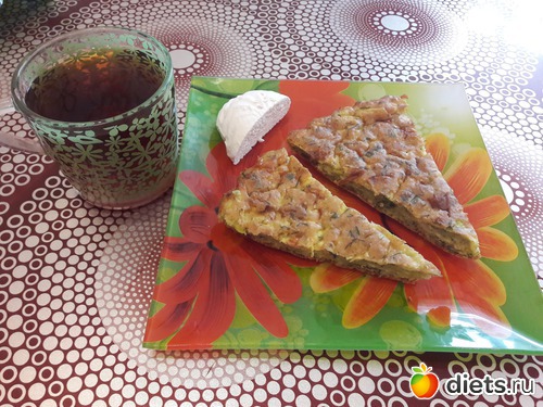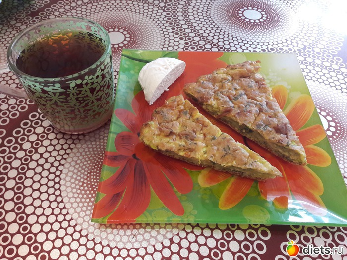 Завтрак - кабачковый пирог с сыром, 1/4 зефира + чай с лимоном
