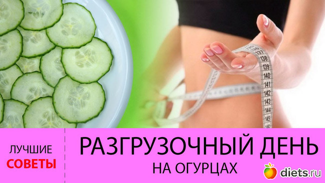 Разгрузочный день на огурцах – минус 3,5 кг Популярность всех огуречных диет, как, собственно, и самого разгрузочного дня на огурцах построена на двух уникальных качествах этого овоща — во-первых в нем содержится мизерное количество калорий. Но что наиболее ценно для желающих похудеть — в огурцах присутствует тартроновая кислота — вещество, которое значительно замедляет процесс преобразования углеводов в жиры. Учитывая, что на огурцах можно потерять до 3.5 кг - этот вид разгрузки и детокса можно смело назвать самым эффективным разгрузочным днем. Особенности. Огуречный разгрузочный день – наименьший по калорийности, нередко суточная сумма калорий при этом режиме едва достигает 300. Поэтому лучше, если этот день вы проведете дома, без особых физических и умственных нагрузок. Плюсы и минусы. Самый явный и желанный плюс разгрузочного дня на огурцах – его высокая эффективность, в некоторых случаях можно потерять до 3,5 кг лишнего веса. Меню на день. 1,5 кг свежих крепких огурцов распределить на 5-6 приемов пищи. Употреблять без соли, соусов и специй, но можно добавить 1-2 ст.л. отрубей и 2 яйца на день