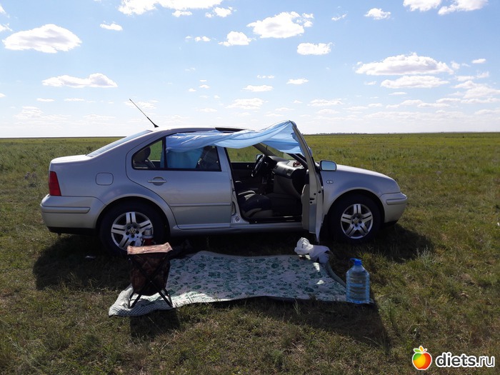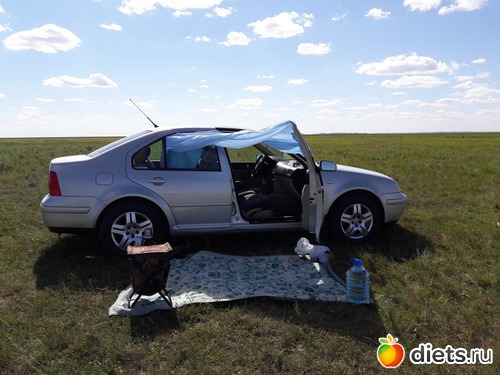 Вчера я потребовала, чтобы и мои интересы учитывались, А потому, пока он мне не соорудил навес, никакой ему рыбалки! У нас же в степи фиг укроешься от солнца. Есть три тополя на плющихе, но они как ориентир вдоль дороги стоят.